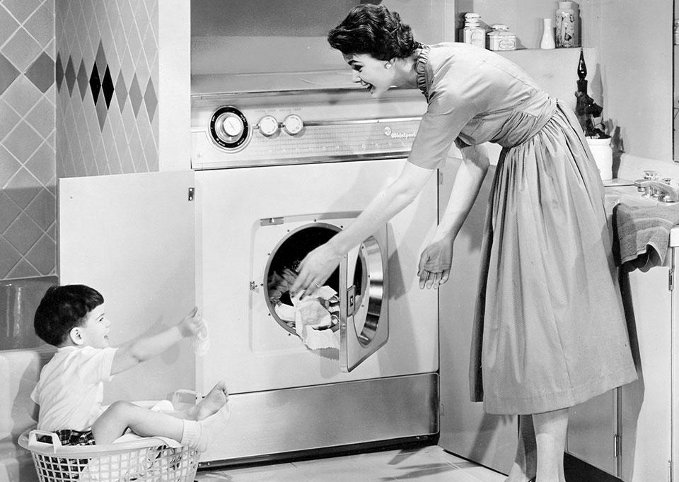 1946: fiera di Milano. Appare la prima lavatrice prodotta interamente da un’azienda italiana, quella della famiglia Fumagalli. La lavatrice è vista con curiosità e appare uno strumento avveneristico. Negli anni ’50 è ancora raro trovarlo nelle case italiane. Negli anni ’50 il Financial Time giudica la lira “una moneta da Oscar”, sono gli anni del boom economico! Tuttavia i consumi non decollano tanto quanto nel resto d’Europa perché i salari sono relativamente bassi e quindi non c’è una reale crescita delle vendite. La lavatrice, tra l’altro, costava tanto quanto oggi, probabilmente, costa un computer di ultimissima generazione. Tuttavia in circa 20 anni la situazione, lentamente, cambia. Nel 1970 la lavatrice è finalmente un elettrodomestico comune, di massa. La casa, e in particolare la cucina, si arricchisce di nuovi elettrodomestici: i prezzi diventano accessibili per una fetta maggiore della popolazione. Negli stessi anni decolla anche la produzione. Per intenderci, l’Italia diventa la terza produttrice mondiale di frigoriferi, dopo gli Stati Uniti e il Giappone! Non solo: i Fumagalli creano la storica marca Candy. L’azienda produce nel 1957 la sua prima lavatrice semi-automatica; nel 1957 una del tutto automatica.